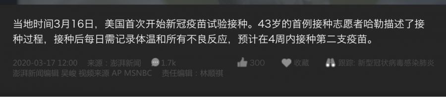 3月16日,美国跳过动物直接人体接种。首位志愿者表示:感觉良好。
