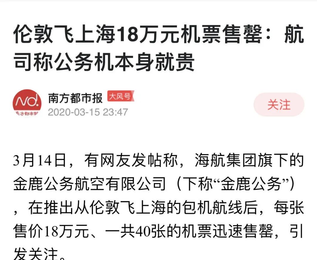 有的“包机”,其实是“公务机”。运营这些飞机的公司本来就已具备某些航线的合法许可,对特定人群开放,在当前特殊情况下,对担负得起天价票的归国人士开放。