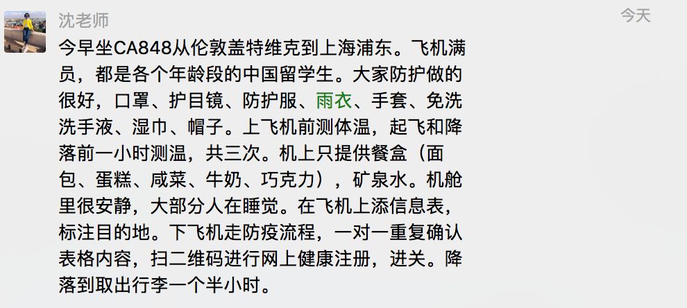 有发烧、咳嗽等症状上报后,要做好落地后十几个小时等待的心理准备,与面临着巨大工作量的机场和驻机场防疫工作者互相体谅。国家也需要对国内人民负责。